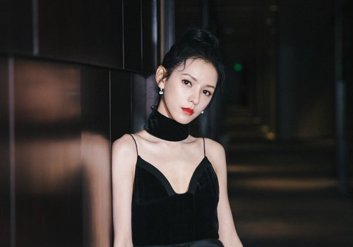 小脸女生身穿流行黑色金丝绒礼裙参加宴会,一头黑色长发聚集在头顶靠后的位置,盘成花苞头发髻,优雅高贵的露额盘发与复古时尚的礼裙搭配在一起,小脸女生惊艳亮相,成为宴会焦点人物。
