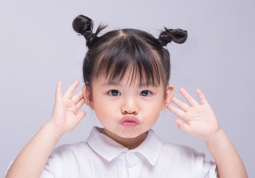 如果你家四岁女孩的头发过肩的话,这时给女儿扎哪吒头的时候,就没有必要把女孩后面的头发散着了,将其聚集在头顶两侧边,分别盘成耸立小丸子头,搭配轻薄刘海,天真烂漫的小萝莉人见人爱。