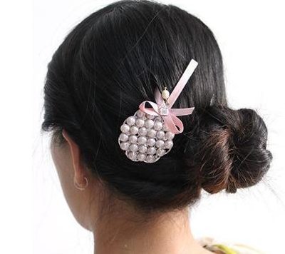 第六步:将扭转好的长刘海沿着发际线走向,向后拉到发际线的下面,沿着盘好的发髻逆时针环绕,发尾用发卡固定住。