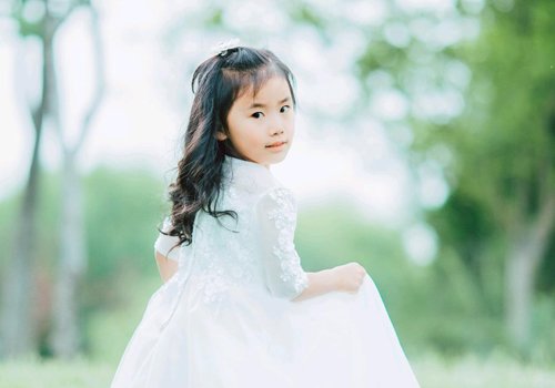 留着一头长发的5岁小女孩穿白色公主裙的时候,妈妈把女儿的头发烫成一次性卷发,并且扎成苹果头,露额苹果头半扎发非常适合5岁没有刘海的女孩梳,整个人看起来很是浪漫清新。