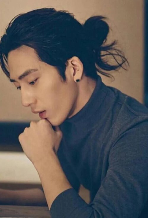 半扎头发紧跟潮流,后脑勺头发部分是直接剃短,帅拽有型款式的男生扎发,带出动感潮流款式的男生短头发,左右头发部分更是精心做出,中间头发部分是扎出流行风韵,提升高颜值度款式的发型设计。