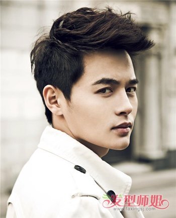 男生觉得自己剃两边短发太过简单了,那么就将头顶发丝在定位烫技术的帮助下,弄成耸立造型,在头顶上往前倾,原本软软的头发变得很有质感很蓬松。