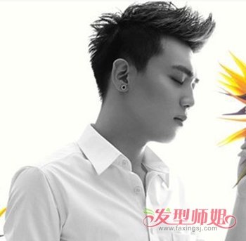 男生梳酷帅潮流飞机头短发发型的时候,将后面头发向下梯度剪裁,弄成后面尖造型,前面的头顶发丝与刘海一起定位烫打理,弄成耸立向上的露额飞机头发型,也就是流行的男生头型前面v字形后头是个尖的造型。