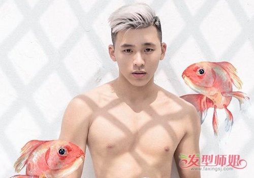 男生剃鬓角侧梳米白色短发发型