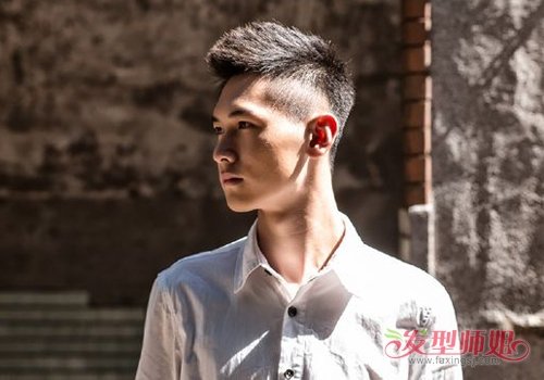 给鬓角的头发做成短发发丝,发顶上的头发从发旋位置梳到了前侧,男生短发寸头发型有着比较长的线条,男生剃鬓角短发发型在发际线位置梳了延长设计,短发寸头发型有圆润头型。