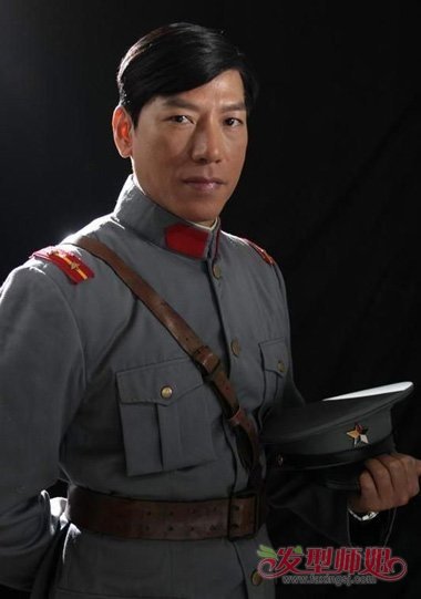 张耀扬的二九偏设计,留出的刘海更是紧跟时尚,即便是穿上军服的他看上去仍然有着痞子形象,左右两边的头发是自然梳下,符合黑道上的酷气发型打造。