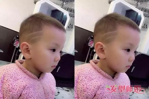 国外小男孩的短头发,修饰出孩子的活泼度,剃出的鲨鱼头特别显可爱,而鬓角部分的头发直接剃掉,富有自信又能带出潮范,延展性优秀款式的孩子造型,能令孩子的潮度显示出来,让人爱不释手款的发型。