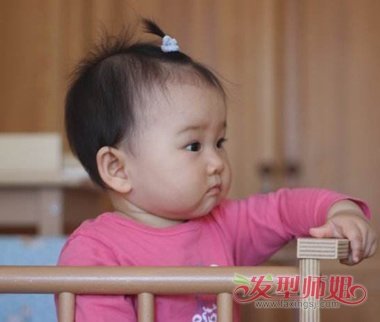 胖乎乎的男宝宝头发长长不少,妈妈们如果来不及将儿子的头发剪短,那么就将前面的刘海与头顶短发聚集在一起,用皮筋扎成苹果头,让男宝宝的圆脸完全露出来,将呆萌可爱进行到底。