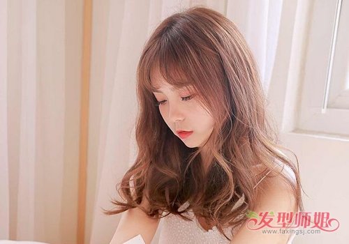 圆脸型的女生梳什么样的发型好看?圆脸型女生空气刘海烫卷发的发型,在发顶上梳起来的头发两边都比较蓬松的梳过去,烫发发型顺着头型做饱满的曲线修饰,烫发发尾也比较浪漫。