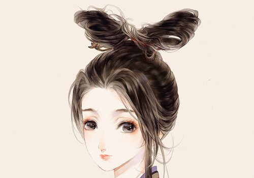 虽然没有发饰,但是这款仿佛是小女孩最爱的双髻盘发发型,让古代的女子也拥有了时尚的魅力。古代女子做的中分高髻盘发发型设计,眼角外围的头发梳起来比较轻盈,盘发发型发饰都要选最简单的。