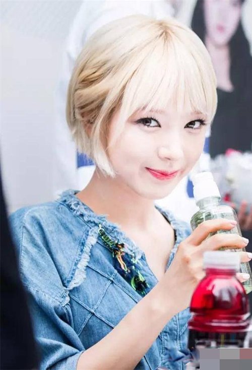 米黄色的头发部分,秀出女生的潮流时尚,眉上齐刘海造型部分更加迷人,鬓角头发部分是精心做出,超级漂亮可人的女生短头发,微卷头发打理出最为漂亮造型,十分抢眼美的头发,超有特色款式的发型。