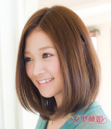 圆脸女生偏分内扣柔顺齐肩发发型