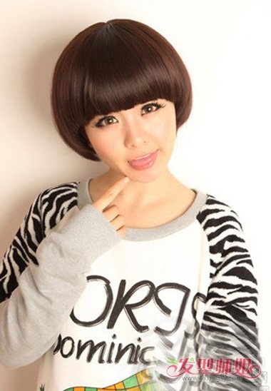 深棕色头发透露出洋气,额头上方刘海是精心打造,释放出独特魅力流行造型,应和甜美时尚度的短发,头发颜色更是衬托肌肤亮白,符合她蘑菇头款式的头发,引爆回头率百分百的造型,透露出点点娇艳。