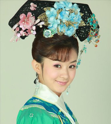不同的清宫剧展示出来的大拉翅旗头造型形式而又不同,比如这位明星梳的旗头就小很多,却依旧是大拉翅造型,上面多用花朵发簪点缀,衬得人清新高雅,是格格们戴的旗头造型。
