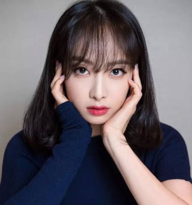 黑色的头发梳中长发发型,女生空气刘海烫梨花头发型,要将耳尖上的头发顺着头型拢在后边,中长发发型发尾是大卷的曲线,女生梨花头发型发根头发还是很软很整齐的。
